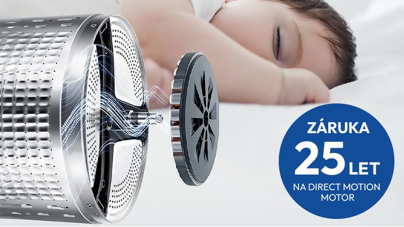 Direct Motion je náš nejtišší a zároveň nejefektivnější motor u vybraných praček a praček se sušičkou. Je umístěný přímo na ose bubnu, proto i při odstřeďování snižuje vibrace na minimum a spotřebič téměř neslyšíte. Záruka 25 let zdarma potvrzuje, že si za jeho kvalitou opravdu stojíme. K získání záruky je potřeba registrovat svůj nový produkt do 14 dní od nákupu na www.registrace-zaruka.cz, kde také najdete aktuální seznam výrobků zařazených do této akce a její pravidla.