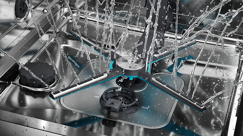 Dvojnásobné pokrytí mytí spodního koše díky ramenu X Spray (ve tvaru písmene X), které dosáhne do každého koutu myčky a zajistí vašemu nádobí výjimečný lesk a čistotu.