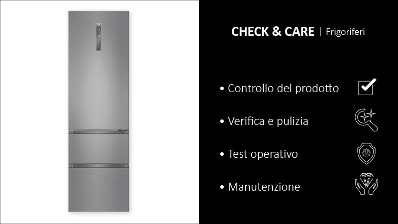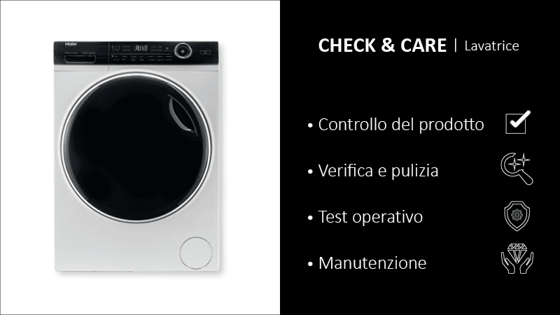 Haier mette a tua disposizione un servizio dedicato alla cura e alla manutenzione dei tuoi elettrodomestici. Contatta il Servizio Clienti Haier 02 400 48 270 per trovare il centro assistenza autorizzato più vicino a te e richiedere il programma Check & Care. Ci impegniamo a garantire un servizio professionale e sempre vicino alle tue necessità. Eseguire regolarmente interventi di cura e manutenzione preserva l’affidabilità e le prestazioni dei tuoi elettrodomestici Haier. I nostri tecnici specializzati Check and Care effettueranno un trattamento speciale sul tuo prodotto direttamente a casa tua e ti suggeriranno le soluzioni più adatte per manutenere al meglio i tuoi elettrodomestici. Chiama il numero 02 400 48 270*