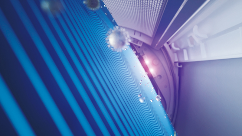L’UVC Generator Module del condizionatore e purificatore Flair, sfruttando i raggi ultravioletti e la tecnologia Led di ultima generazione è in grado di inibire fino al 99,998% di batteri e virus presenti in un ambiente, compreso il Sars CoV-2, in appena un’ora (risultato certificato Texcell). Una purificazione dell’aria potente e sicura grazie al sistema di protezione che impedisce il contatto dei raggi UV con la pelle e con gli occhi.