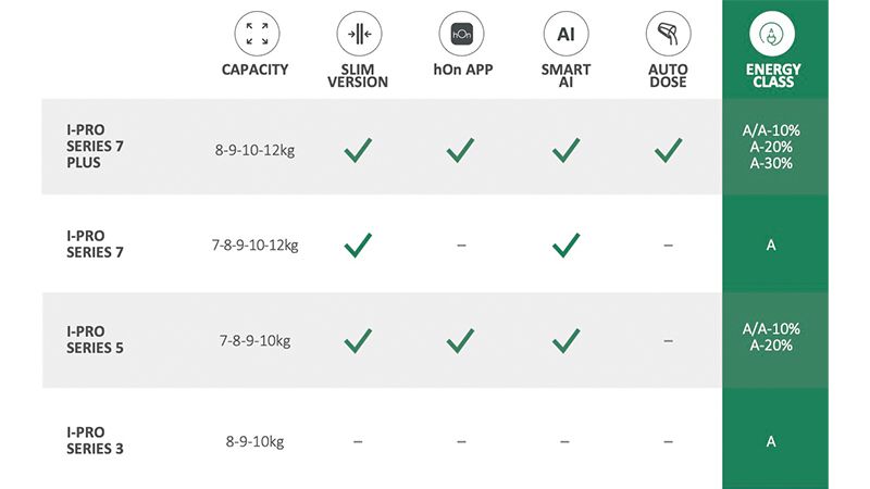 I-Pro Serie 7 Plus è collegata al tuo telefono tramite l'app hOn e grazie all'Intelligenza Artificiale, ti offre un'esperienza su misura consigliandoti ogni volta il miglior ciclo di lavaggio sulla base delle tue esigenze. Grazie all'app hOn puoi ottimizzare i tuoi consumi e accedere a una libreria di 60 programmi specifici.