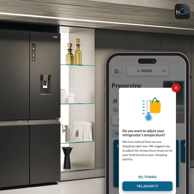 Personalizza le impostazioni del tuo frigorifero in base ai tuoi impegni e rimani aggiornato sulle tue esigenze con l'app hOn, assicurandoti che il tuo frigorifero si adatti al tuo stile di vita.